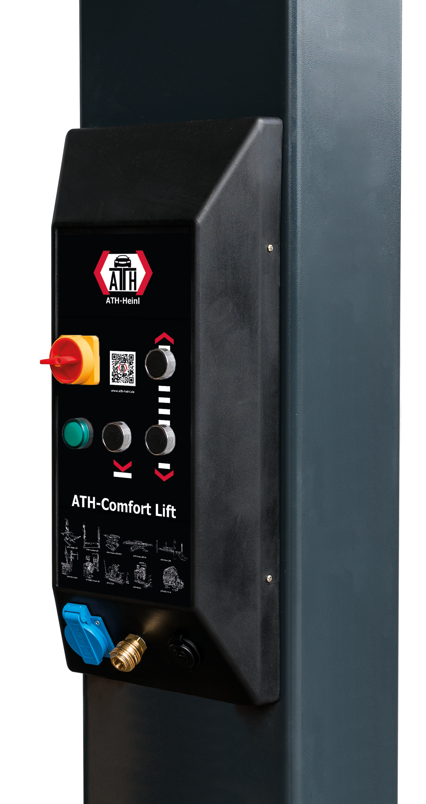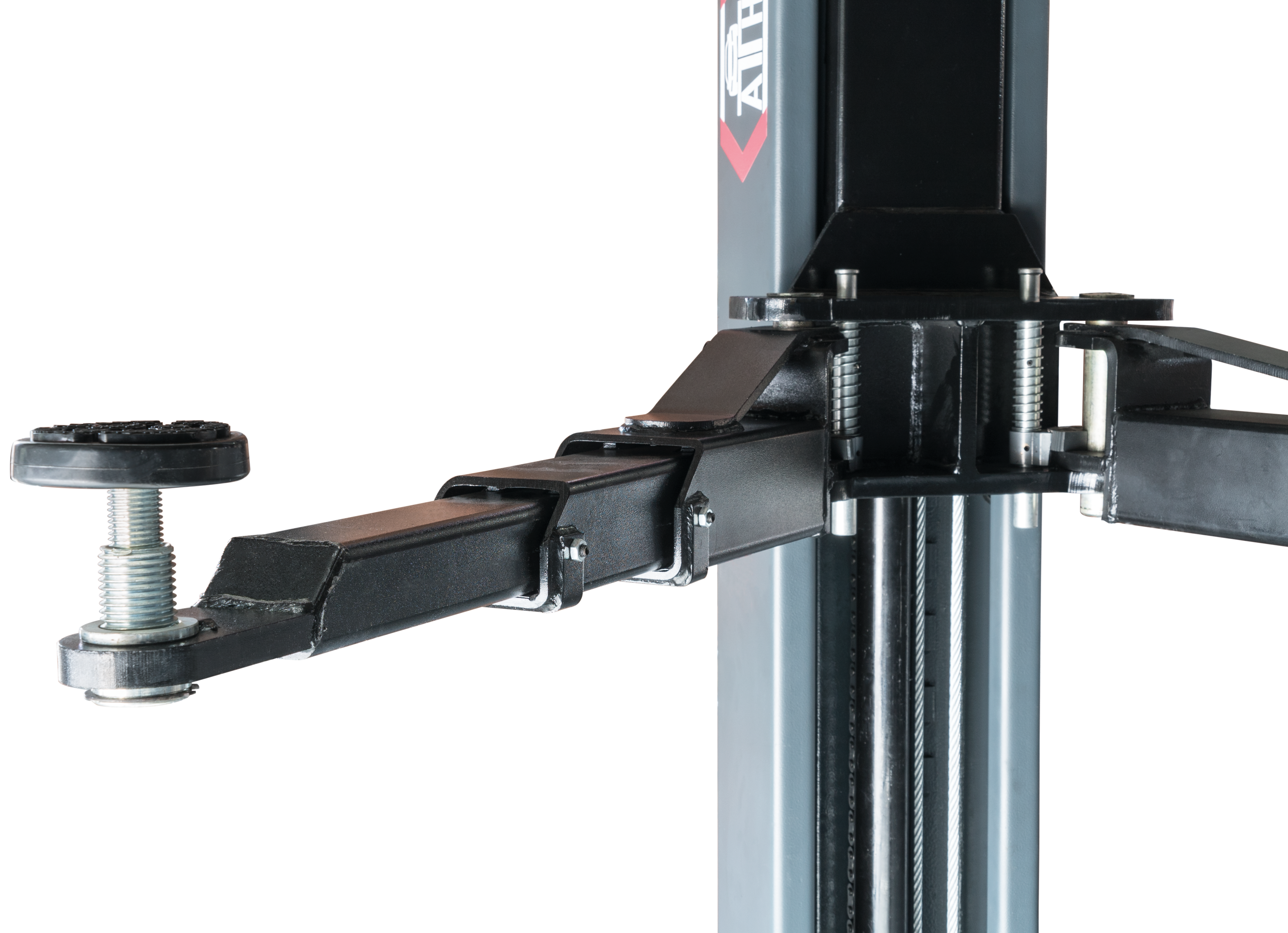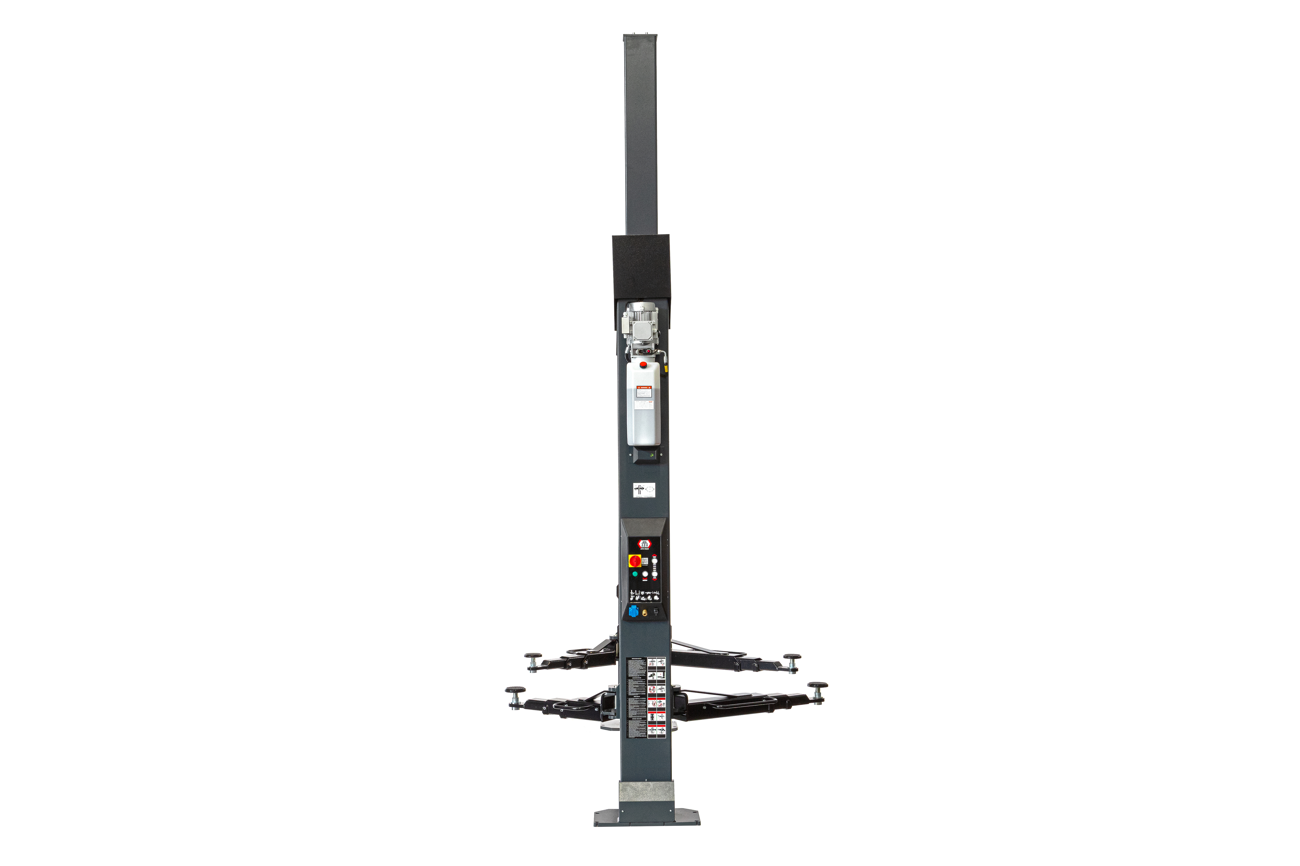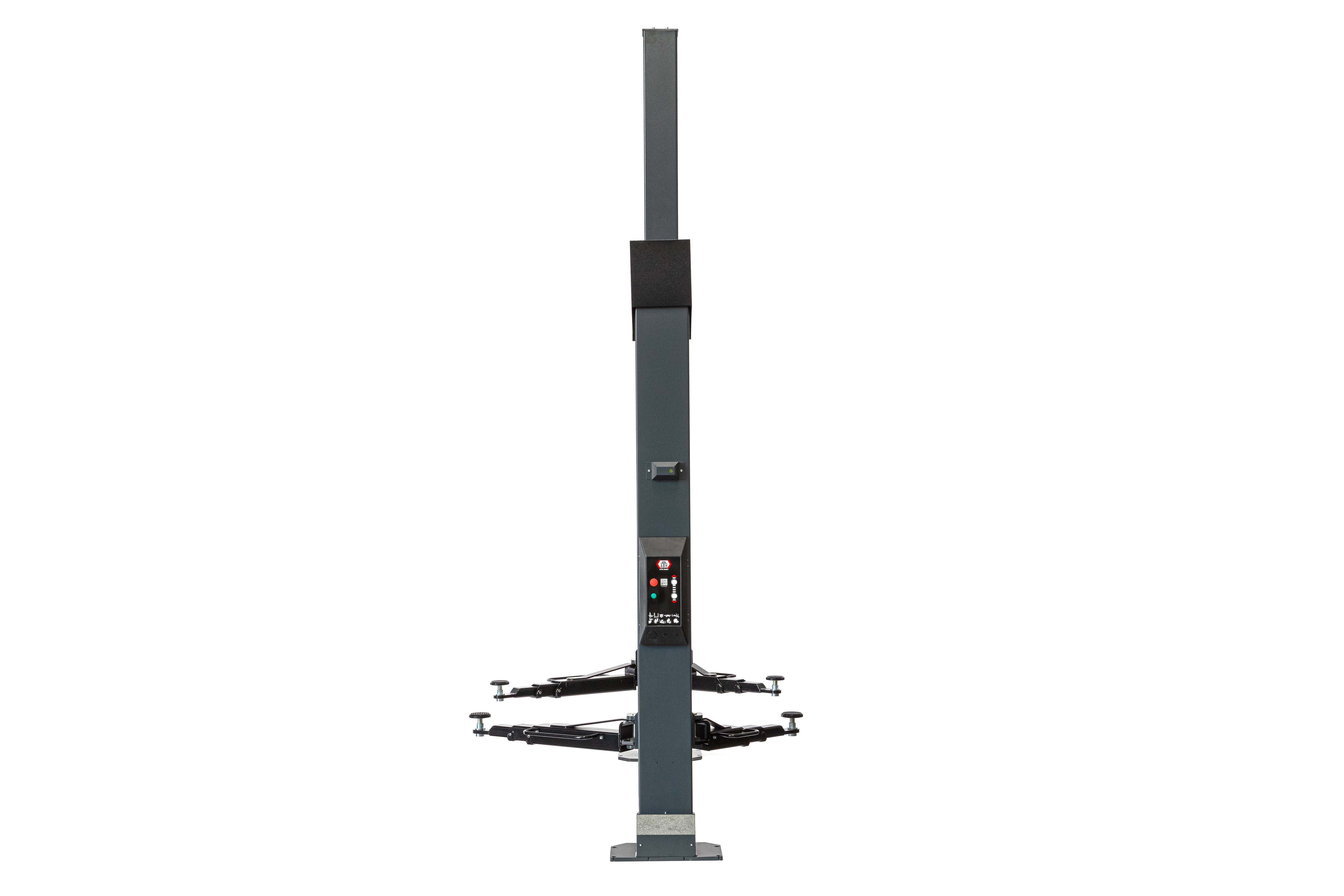 - Electro-hydraulic 2-post lift with quick lift unit and load-dependent lowering function