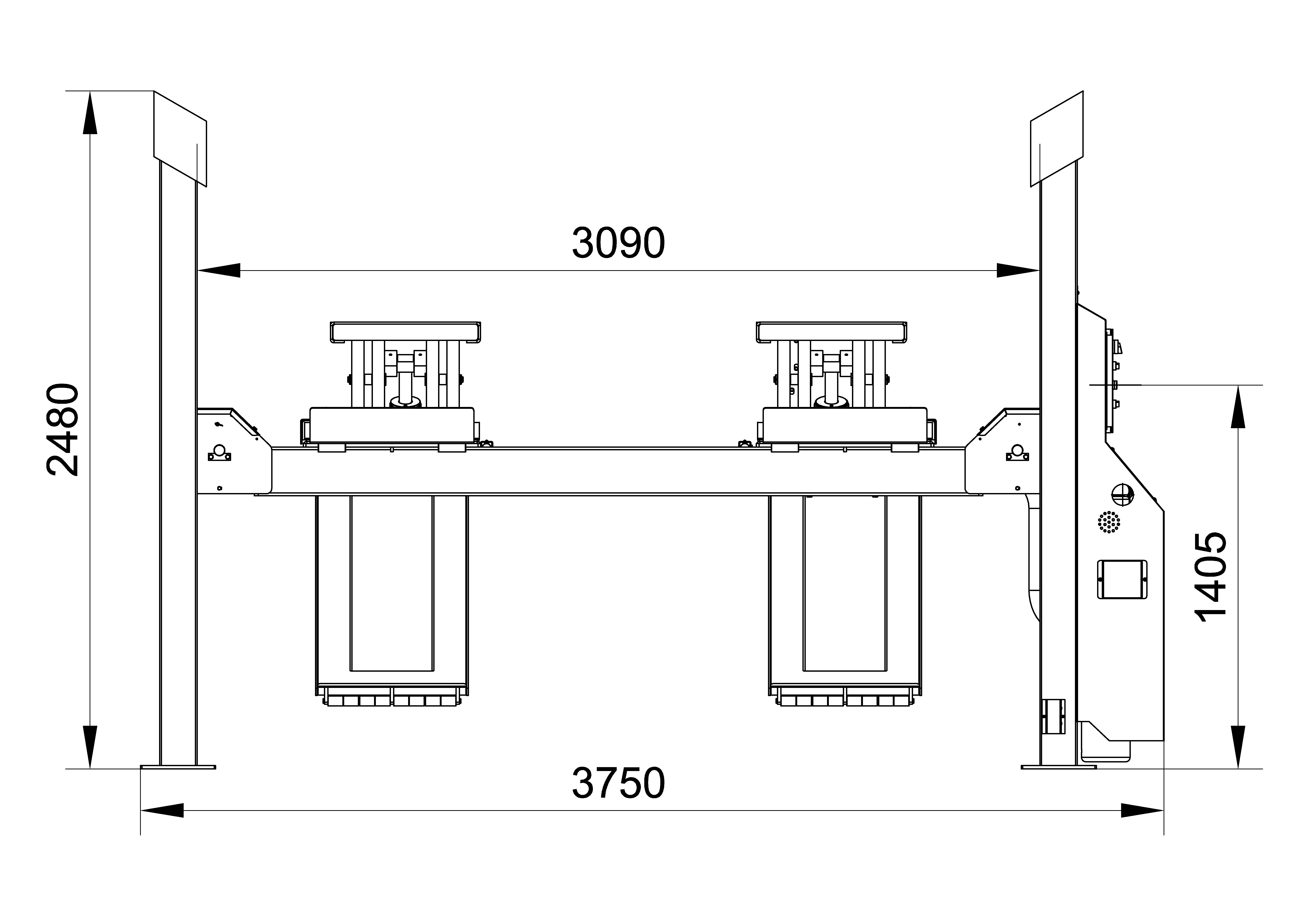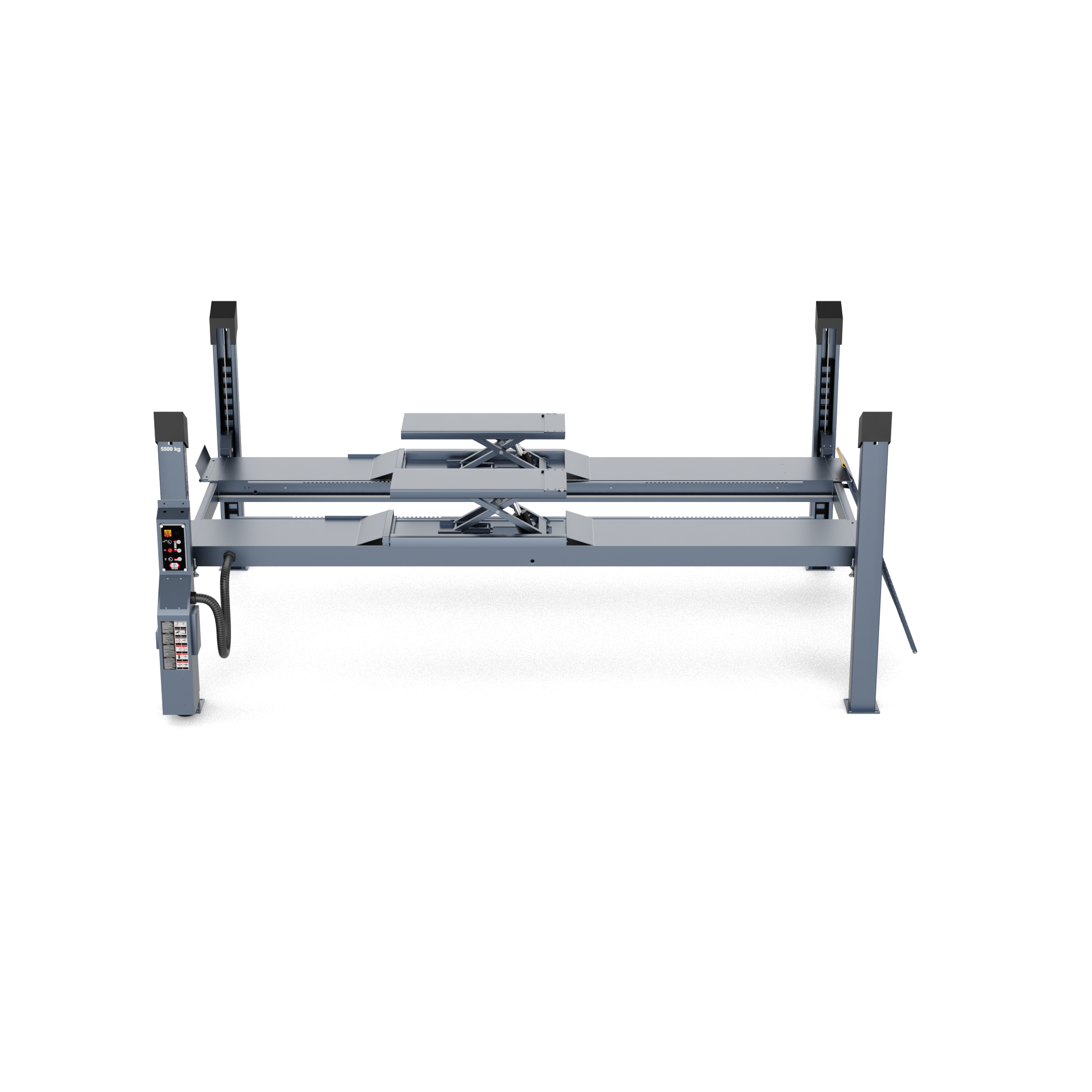 • Electro-hydraulic 4-post lift with quick lift unit and load-dependent lowering function