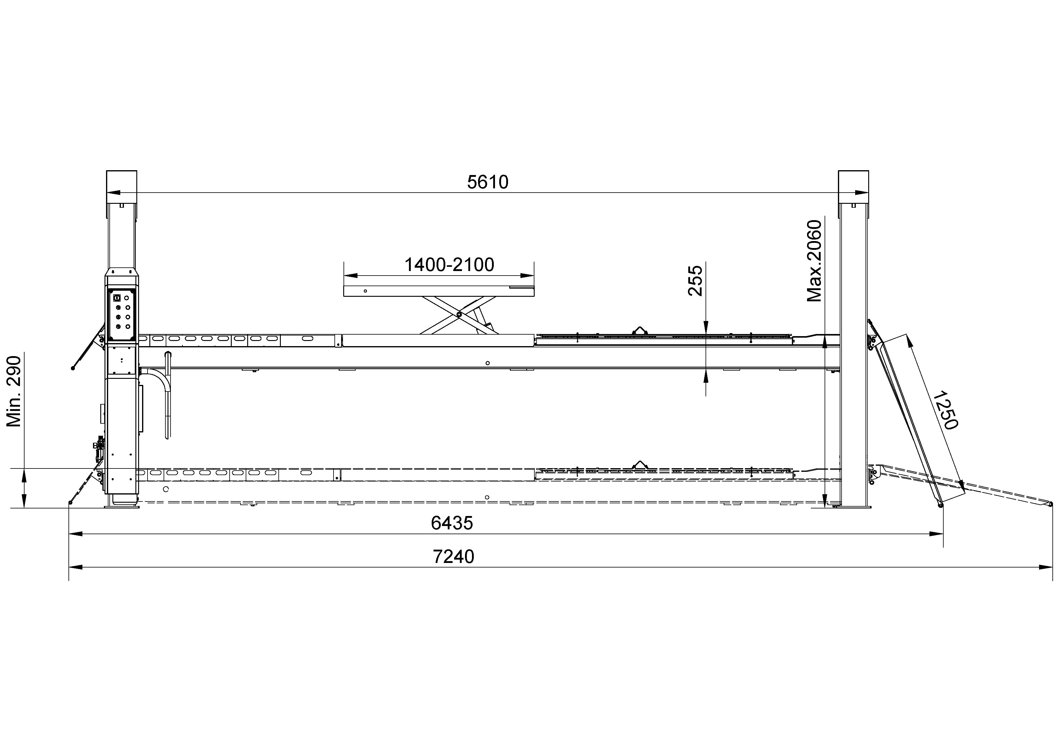 - ATH Four Lift 65HAP: Flat runway with integrated Free wheel lift (Load Capacity 3,5t) and wheel alignment kit